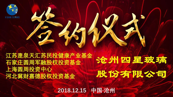 今天是一個特殊的日子!是我們四星玻璃發(fā)展史上的又一個新的里程碑,是我們公司成立26年來的又一次重大事記! 近年來,四星玻璃不斷完善和提升經(jīng)營管理質(zhì)量和管理水平,持續(xù)加大國內(nèi)外市場的開拓力度,營業(yè)收入逐年增加,利稅貢獻連年上漲,憑借特有的技術(shù)優(yōu)勢和廣闊的發(fā)展前景獲得了眾多投資者的認可和青睞。公司通過與投資機構(gòu)進行廣泛接觸、深入洽談和細致調(diào)研,本著合作共贏、互利互惠的原則與四家優(yōu)質(zhì)投資機構(gòu)達成一致意見,促成了本次簽約。
