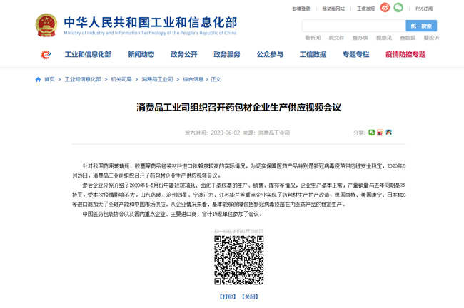 | 工信部消費品工業(yè)司組織召開藥包材企業(yè)生產供應視頻會議 |